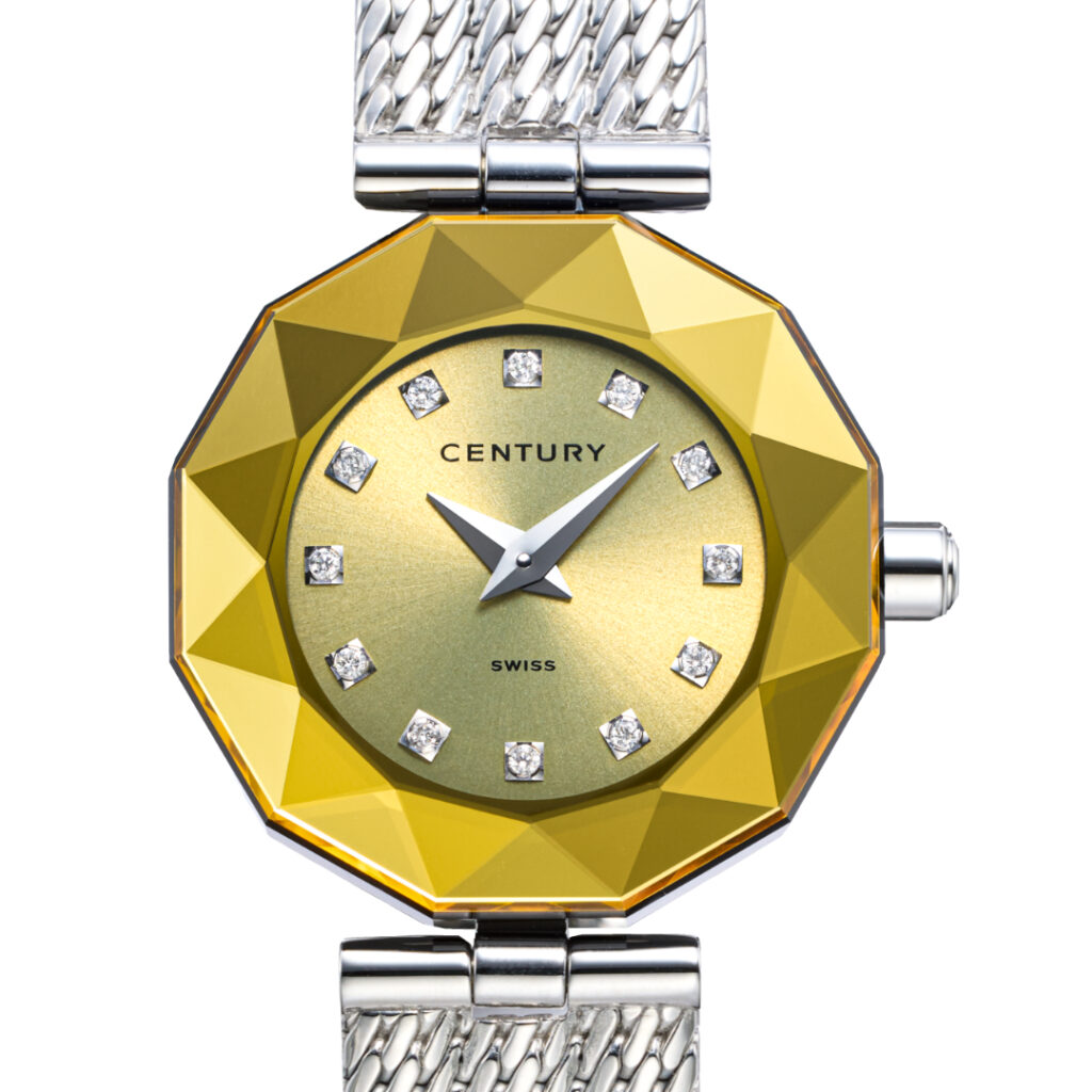 「ステラ オーロ」は、センチュリー独自のサファイアカッティング技術とモダンな実用性が融合したジュエリーウォッチです。フォーマルなシーンを華やかに彩るだけではなく、デイリーな装いをランクアップさせるアイテムとして最適です。